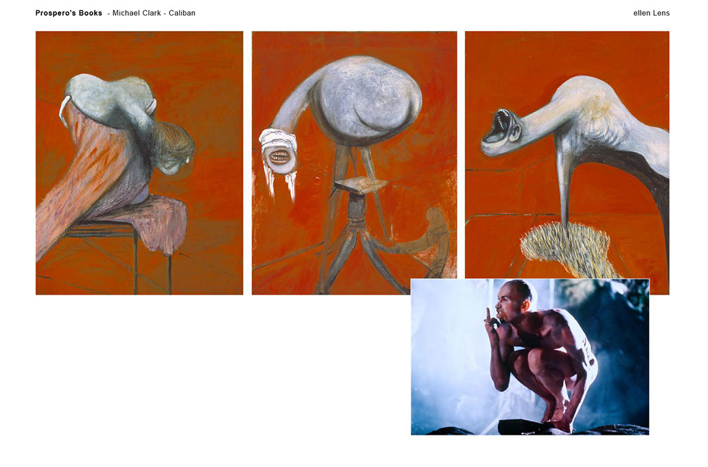 Peter Greenaway retells Shakespeare's The Tempest in a unique parallel structure: the introduction of the books is followed by episodes that fit each other thematically, and thus within the story "reality" is achieved through use of the imagination. Through dance and words Greenaway's interpretation is revealed.
